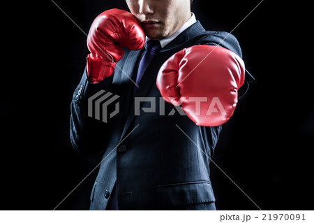 ビジネスマン、ボクシンググローブ、挑発、歓喜