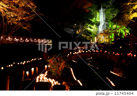 滝のライトアップと竹あかり