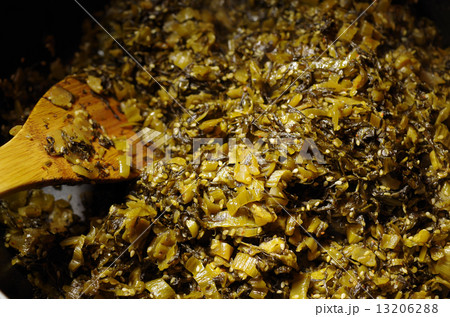 辛子高菜を作る様子 フライ返し