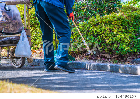 日本の横浜都市景観 環境美化作業をする高齢者…これからの時代、高齢者も働かなくてはならないのか…