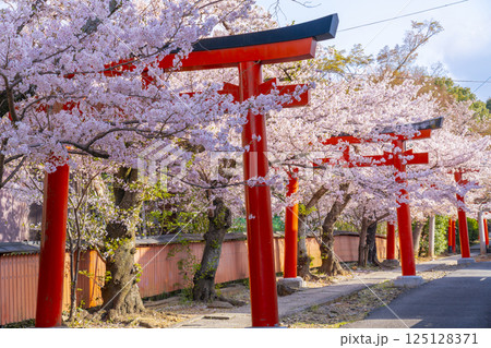 京都 竹中稲荷神社 連なる鳥居を包む満開の桜