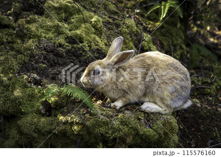 EOSR6.広島大久野島、寝そべった密談ウサギ。