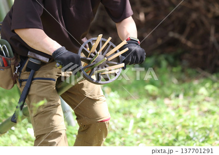 竹を切る男性
