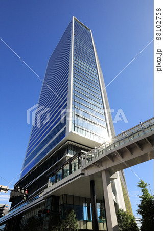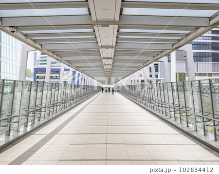 東京 港区の都市風景 東京ポートシティ竹芝に直結する歩行者デッキ