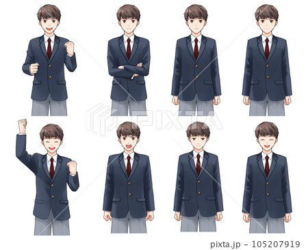 ブレザーの男子学生 表情詰め合わせ
