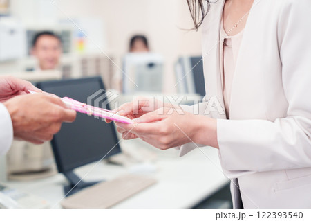 上司からお祝いを手渡されるビジネスウーマン