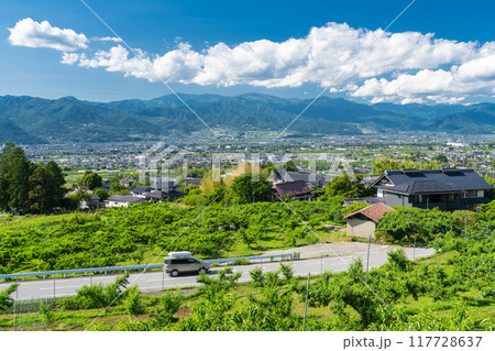 《山梨県》初夏の甲府盆地・のどかな街並み