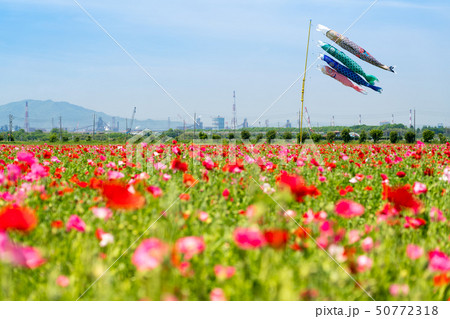 ポピーの花畑と鯉のぼり 【岡山県 笠岡市】