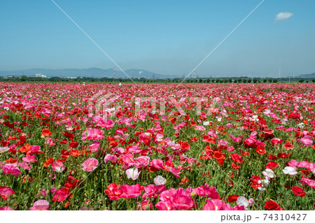笠岡湾干拓地 笠岡ベイファーム見渡すばかりのポピー畑