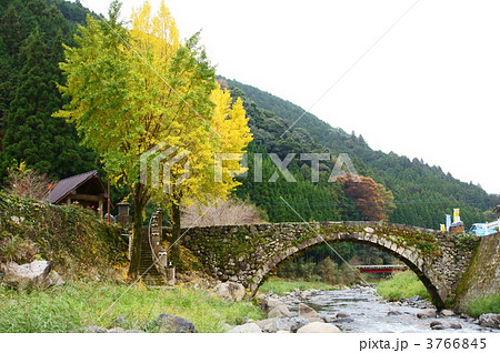 秋の笠松橋と大銀杏 (熊本県八代市東陽町)