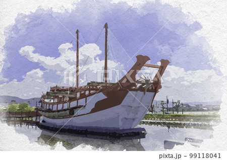 水彩画風 平城京跡歴史公園 推定宮内省 奈良県奈良市