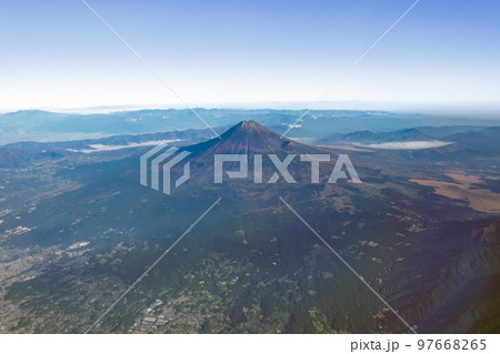 晴れ渡った上空から秋晴れの富士山(静岡県上空)