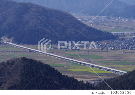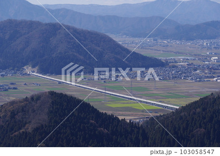 福井市南部を走行する北陸新幹線(文殊山 福井第二トンネル上 福井駅~越前たけふ駅間)