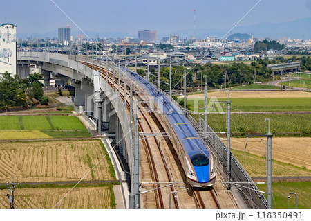福井市南部を走行する北陸新幹線(文殊山 福井第二トンネル 福井駅~越前たけふ駅間)