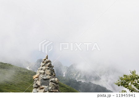 八方尾根第2ケルンと霧に霞む山
