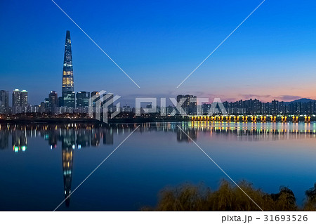 韓国ソウル 漢江 第2ロッテワールドタワー 夕景