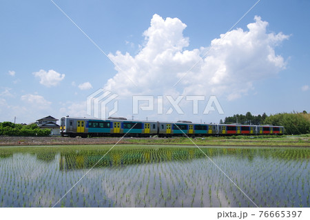 水郡線 水田を行くローカル列車3