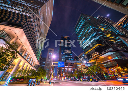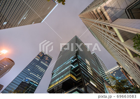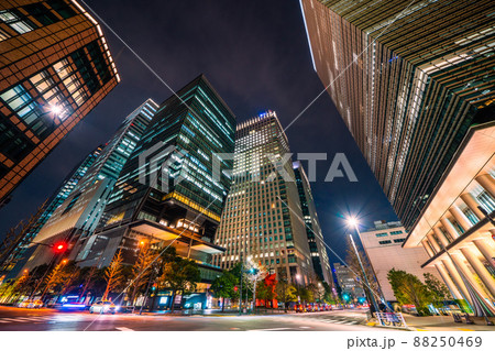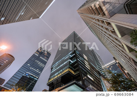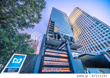 日本の東京都市景観 大手町駅とつながる超高層ビルなどを望む