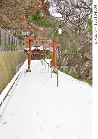 冬の北海道江差町で笹山稲荷神社の境内の風景を撮影