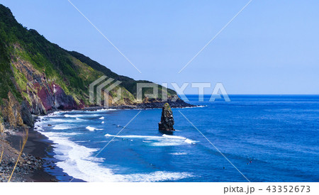 東京都大島町にある筆の穂先の様な形状の岩の筆島の風景