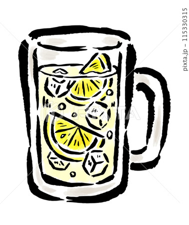 泡立つビール ジョッキグラス 筆タッチイラスト