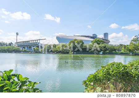 等々力緑地 釣り池と等々力陸上競技場 神奈川県川崎市中原区