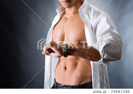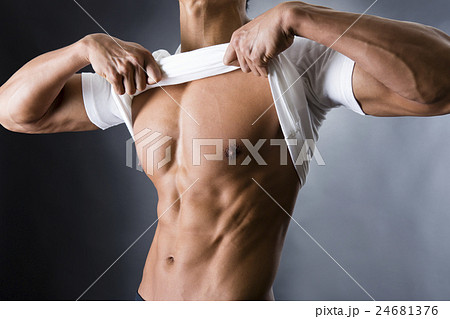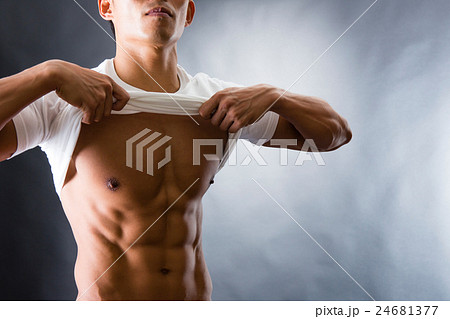 トレーニングで鍛えられた細マッチョなアジア人男性の上半身