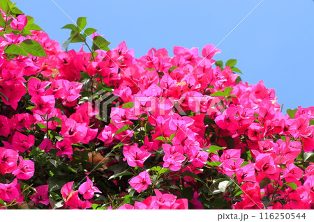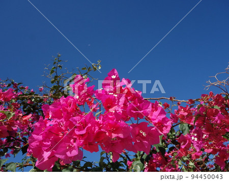 熱帯性の低木であるブーゲンビリアのマゼンタ色が斜光で映える