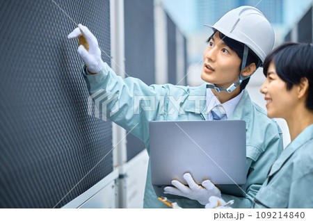 点検作業する作業員の男女 撮影協力:有明教育芸術短期大学