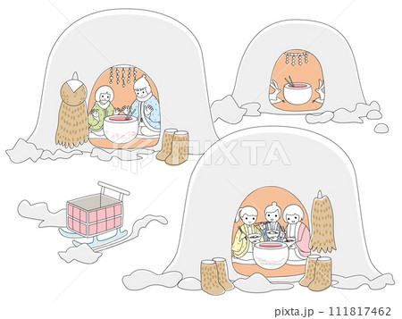雪国のかまくらで暖まる人々