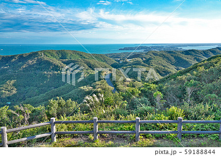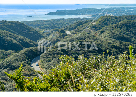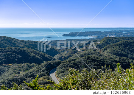 日本 三重県鳥羽市のパールロード沿いにある鳥羽展望台から見える太平洋