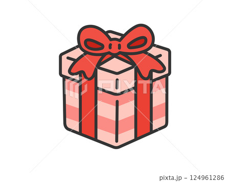 ボーダー柄の。プレゼントボックス(線画カラー)のイラスト