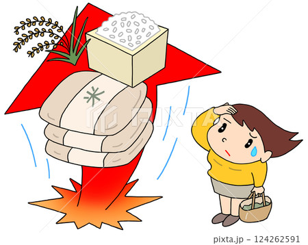 米の値上げに困る主婦・価格高騰にため息をつく女性のイラスト