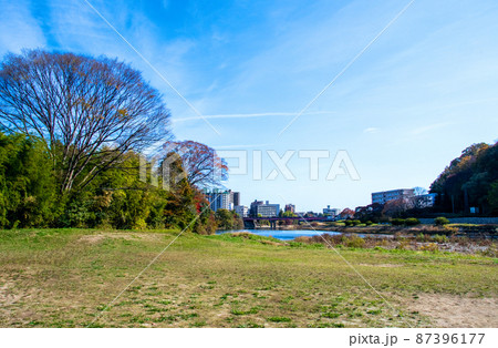 杜の都仙台 晩秋 広瀬川上流 右岸段丘 向山の景観