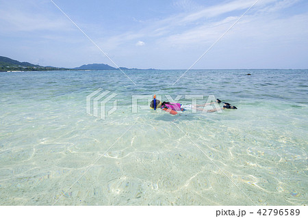 石垣島の海でシュノーケリングをする子供 リゾートイメージ