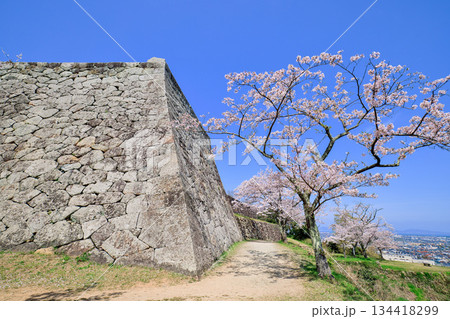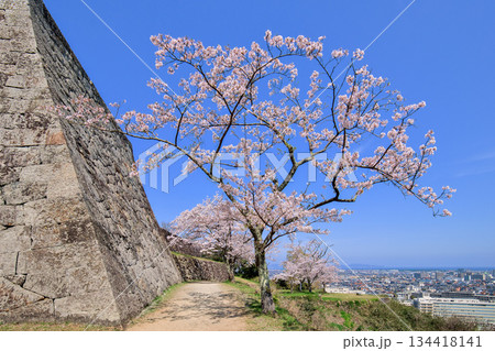 〈鳥取県〉米子城跡の桜 四重櫓台 小天守台石垣の隅角 4月