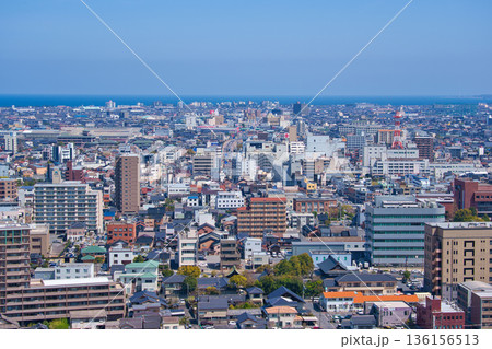 〈鳥取県〉春の米子城跡 大天守台から街並みの風景 4月