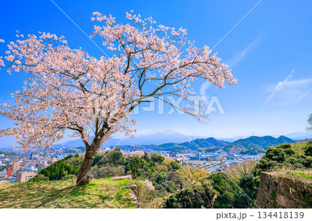 〈鳥取県〉春の米子城跡 桜と大山を望む風景 4月