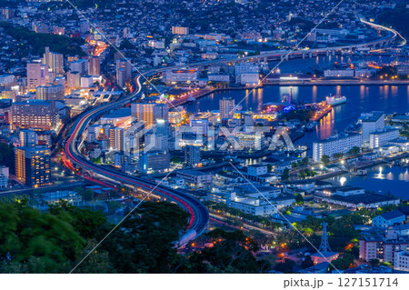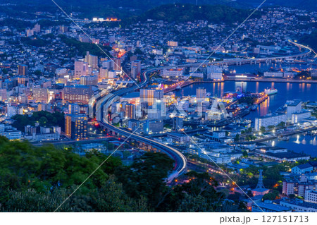 (長崎県)弓張岳展望台から眺める佐世保中心街 夕景