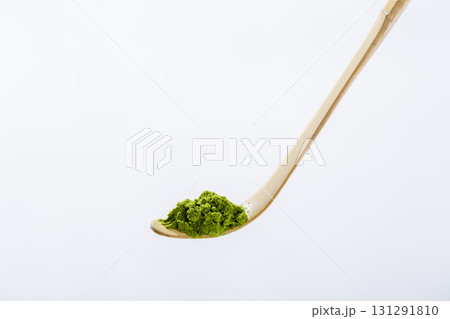 抹茶イメージ 茶匙を白背景で撮影