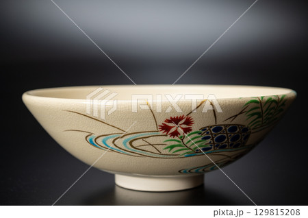 仁清写 撫子絵平茶碗1|粟田窯 曉山 作の雅やかな京焼抹茶碗