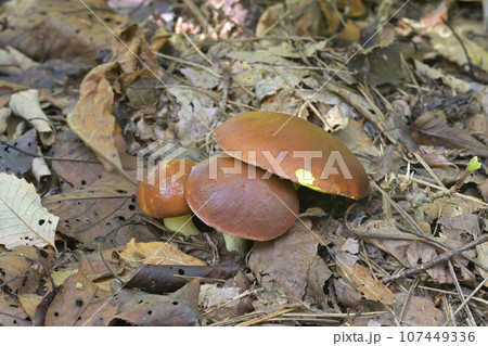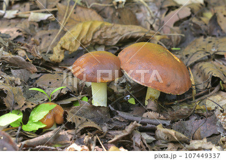 自然 茸 チチアワタケ、幼菌。小さな傘は半球形で粘液に覆われています。柄からも粘液があふれ出て・・・