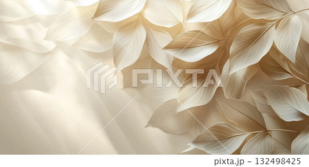 Elegant abstract beige background with overlapping leaf shadow layers, soft gradients, and a sunlit atmosphere