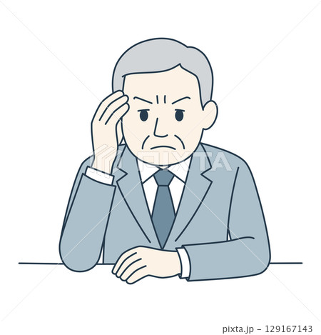 頭を抱えるシニア男性(スーツ姿・カラー)