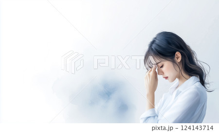 ため息/落ち込む/悩み/悲しい/体調不良/女性・女の子のイラスト素材