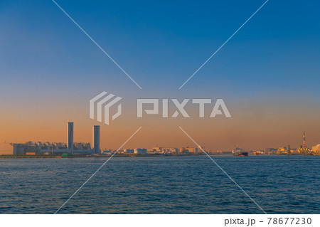 【川崎マリエンからの眺望 京浜工業地域の東扇島火力発電所の煙突を望む】