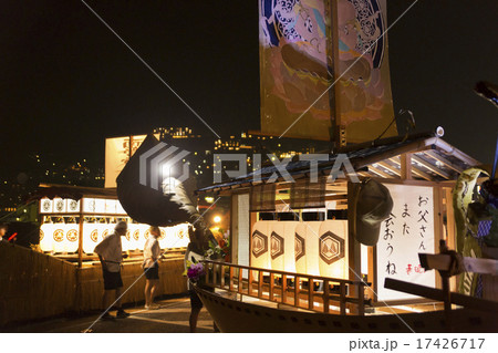 京都府 宮津市 宮津燈籠流しの精霊船 紅白の追っかけ灯籠