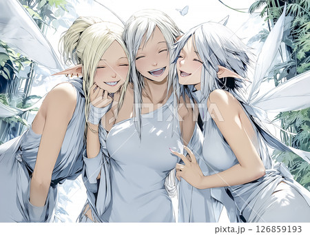 笑顔のピクシー妖精3姉妹のイラスト素材