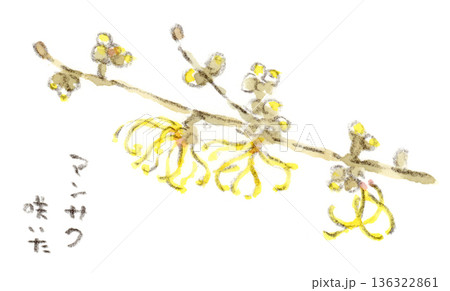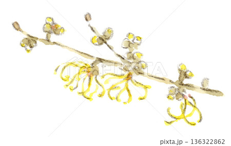 冬〜早春の花、マンサクの水彩画イラスト