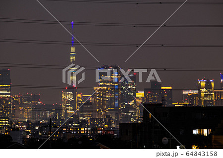 日本の東京都市景観 新型肺炎“都市封鎖”。“柵”(高圧電線)の奥に東京都心=21日、宣言から2週間